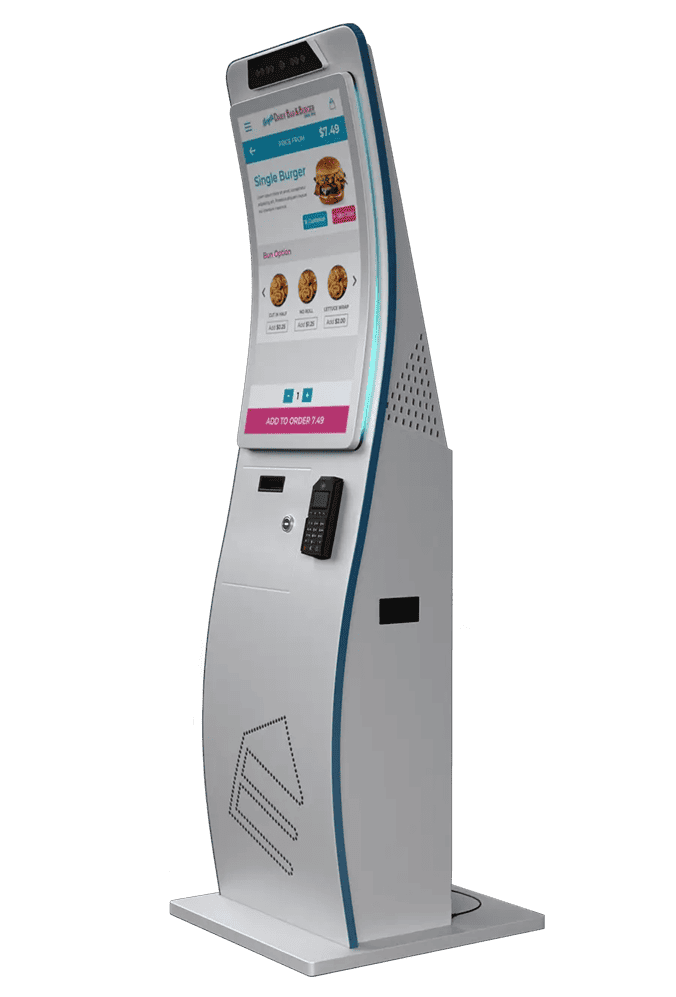 Crème is designed for the business that prefers “efficiency with style!” Crème is designed with a high engagement curved touchscreen trimmed in LED lights creating an unforgettable aura. Available in a variety of colors, its capabilities position businesses to reduce customer wait times, boost efficiencies and reduce lost revenue.